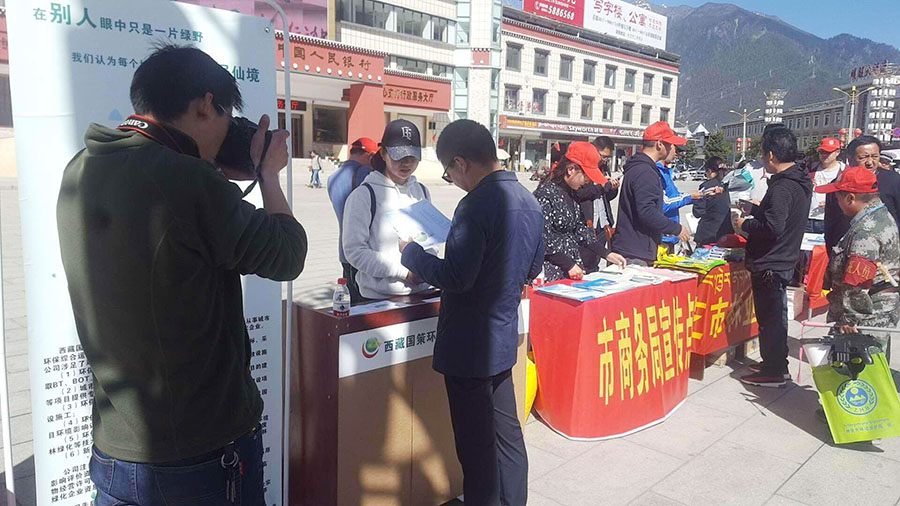 2018年6月5日西藏國策環(huán)??萍脊煞萦邢薰玖种シ止緟⒓恿种ナ协h(huán)保局組織的“美麗中國,我是行動(dòng)者”世界環(huán)境日宣傳活動(dòng),我林芝分公司以環(huán)保宣傳資料,環(huán)保知識(shí)展示牌,向社會(huì)公眾宣傳環(huán)保知識(shí)和互動(dòng),活動(dòng)中林芝市政府領(lǐng)導(dǎo),對(duì)我分公司的環(huán)境衛(wèi)生宣傳工作表示肯定和贊賞,國策環(huán)保呼吁:環(huán)保從點(diǎn)滴做起,共享美麗林芝 !