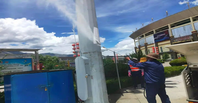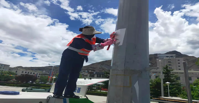 同時,山南分公司還調(diào)配了15名員工、1輛高壓沖洗車、1輛灑水車、1輛洗掃車、1輛多功能沖洗車組成了體育場臨時清洗隊,對體育場垃圾桶、電樁小廣告、周邊雜草以及地面等進行了集中清理,通過采取高壓水槍沖洗和人工擦拭相結(jié)合的方式,體育場周圍環(huán)境及設(shè)施煥然一新,顯露“本色”。